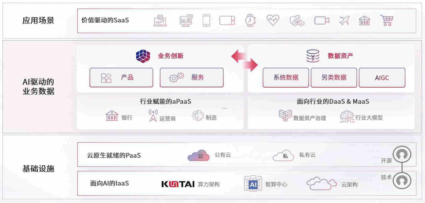 数字时代,,,围绕企业数字化转型的关键要素,,,365钱包数码开创性的提出数云融合战略和技术体系框架,,,着力在云原生、、、数字原生、、、、AI原生和信创产业上架构产品和服务能力,,,为处在不同数字化转型阶段的快消零售、、汽车、、金融、、医疗、、政企、、、教育、、、、运营商等行业客户提供泛在的敏捷IT能力和融合的数据驱动能力,,构建跨界融合创新的数字业务场景和新业务模式,,,助力企业级客户建立面向未来的核心能力和竞争优势,,,全面推动社会的数字化、、、、智能化转型升级。。。