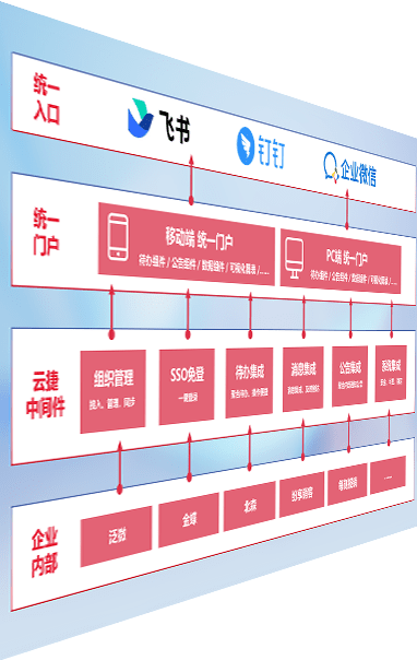 对协作平台提供支持服务,,支持企业应用与协作平台对接,,包含组织同步、、、、消息集成、、、、待办集成等。。支持目前主流的协作平台:钉钉、、企微和飞书。。